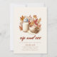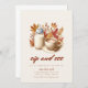 Este gole com tema de outono e veja o convite de festas modelo capta a aconchegante essência da estação com um design charmoso. Uma xícara de café quente senta-se ao lado de uma garrafa de bebê, cercada por uma vibrante folhagem de outono em tons de vermelho, laranja e ouro. Os tons suaves e terríveis criam uma atmosfera acolhedora, perfeita para celebrar a chegada de um novo bebê. Abaixo dessa deliciosa cena, há amplo espaço para incluir todos os detalhes essenciais do partido, fazer que seja fácil convidar amigos e familiares para compartilhar a alegria da ocasião.