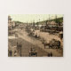 O quebra-cabeça de serra de vaivém de Ireland do vintage com cena da rua nos cais c1900 de Waterford, nos carrinhos de criança no vestido de período, nos barcos do vapor e nas embarcações da vela amarrou na doca. Carruagem & drays do cavalo. Impressão antigo restaurado Digital de Ireland.