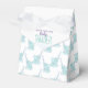 Caixa de favorecimento de chá de fraldas bonito, com elefante giro soprando padrão de bolhas em forma de coração. design de elefante chá de bebê azul-aqua bonito. Personalize com seu nome de honra de chá de fraldas. Ilustrada e projetada exclusivamente por Sarah Trett.