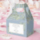 Caixa de lembrança de casamento com pintura em aquarela elegante com folhas verdes delicadas em um fundo azul empoeirado emoldurando sua mensagem de agradecimento em tipografia moderna. Uma maneira perfeita de dizer obrigado aos seus convidados! Desenhado por Thisisnotme