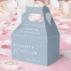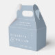 Esta caixa de lembrança de casamento minimalista com monograma azul empoeirado pode ser personalizada com suas informações em tipografia moderna. Projetado por Thisisnotme©