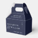 Esta caixa de lembrança de casamento com monograma minimalista azul-marinho pode ser personalizada com suas informações em tipografia moderna. Projetado por Thisisnotme©