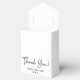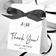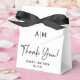 Este Casamento Moderno do Monograma Obrigado A caixa favorita com a noiva e as iniciais do noivo, Obrigado em uma letra de texto de tendência e os nomes de casais felizes e a data de casamento, todos em preto, amarrados com um arco elegante de cebola preta, seriam perfeitos para favores na sua recepção de casamento. Seria excelente para uma estação de doces, em uma obrigado que você mesa de presentes, ou em cada lugar com um favor. Certifique-se de pedir o suficiente para todos os seus convidados.