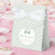 Com o seu padrão clássico de gingham verde-claro, esta caixa de favoritos coordena-se perfeitamente com a coleção de chás de fraldas de Design gingham de Lea Delaveris. Os pontos correspondem à gravata adorável do arco que se senta sobre o texto personalizado. Esta caixa de favoritos é perfeita para qualquer chá de fraldas arco e também funciona bem para um batismo.