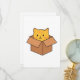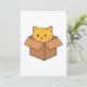 Gato de laranja giro e engraçado sentado dentro cardboard sorrindo