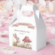 Adicione algum capricho aos favores do seu chá de fraldas com este adorável obrigado ao estilo vintage que você privilegia as caixas! Apresentando um belo coelho aquoso ao lado de uma casa de cogumelos, este design é ideal para chás de fraldas com temas de floresta, rústica ou livro de histórias e vai encantá-los. Personalize-o facilmente com nome e data do chá de fraldas para um toque personalizado.