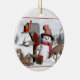 Adorável boneco de neve, com veado próximo a uma caixa de correio decorada, ornamento cerâmico de férias. Este adorável ornamento apresenta uma caixa de correio decorada em feriado com um dentro presente e um estoque pendurado do lado dele. Ao lado da caixa de correio estão duas curiosas fawns de cervo, e um feliz pequeno boneco de neve! Todos estão em frente a um fundo de neve do inverno. Uma alegre arte digital de ornamento de decoração de feriado pela XG Design NYC. Um presente de excelente para amigos, família ou um porta-correio especial, carteiro ou mulher de correio! Para mais cartões de natal e presentes profissionais, por favor visite nosso compro!