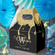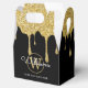 Uma caixa de favor elegante com pingos de brilho dourado, nome personalizado em roteiro, monograma e mensagem. Criado por Thisisnotme©