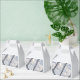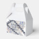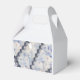 Cordões clássicos de pérolas com delicadas hortênsias azuis e brancas acentuam esta caixa de favor, perfeita para casamentos ou eventos de chá de noiva.