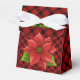 Envie seus presentes em estilo com esta boa caixa de favoritos. Apresenta uma ilustração de flor de poinsettia vermelha de Natal, texto verde "Feliz Natal" colocado contra um fundo preto vermelho de xadrez de búfalo. Faz o toque ideal para os presentes. Personalize-o com a sua própria redação.
