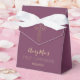 Esta bela e elegante caixa de favores da primeira comunhão sagrada apresenta uma cruz floral de ouro, bem como as palavras "Santa Comunhão" numa letra de ouro tradicional. A cor de fundo (mostrar numa fuschia, cor de ameixa) e o texto do nome/data podem ser personalizados de acordo com o seu gosto pela sua ocasião religiosa especial.