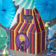Uma caixinha de bonitos e coloridos para crianças com listras vermelhas, laranja, roxa e preta e uma bruxa adorável. As palavras dizem "Feliz Dia das Bruxas", mas pode alterá-lo facilmente e substituí-lo pelo seu próprio texto. Procure nossos guardanapos de papel e placas de papel correspondentes. © ArianeC Ilustrações — Todos os direitos reservados