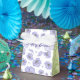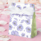 Esta caixa de favor está florescendo com delicadas flores roxas, sobre fundo branco. Os painéis laterais são verdes-claros com folhagem verde-escura. O texto pode ser personalizado.