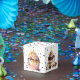 Esta deliciosa design apresenta um bolo escondido na frente, atrás e lados desta caixa de favor, que é definida sobre um fundo confetti colorido. Um design divertido que funciona bem para aniversários, aniversários ou outras ocasiões especiais. O texto no topo diz, "Um Doce Tratado" e "Obrigado por Compartilhar o Meu Dia Especial." Todo texto pode ser personalizado.