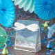 Uma bela praia e oceano com cores azuis e verdes ao longo de uma costa arenosa com ondas de rolamento macio. Personalize conforme desejado para qualquer ocasião especial.