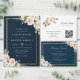 design floral com fundo azul marinho de aquarela e flores escamoteadas com texto elegante. O texto e as cores podem ser alterados para corresponder ao seu tema de casamento.