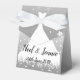 Vestido de noiva e terno temem as caixas de favores de casamento. Design personalizado personalizado com nomes e data.