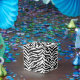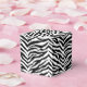 Esta caixa de favor de festa quadrada é mostrada em um design de estampa de zebra.