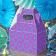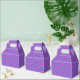 Traga padrões vibrantes e ousados para a sua celebração. Seja um chá de bebê, chá de noiva ou celebração de aniversário, você pode levar sua decoração ao próximo nível com essa impressão geométrica circular azul e roxa ousada e divertida nessas caixas de favor de festa.