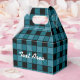Caixa de Favor de Festa Xadrez Preta e Azul-Turquesa para Meninos. Personalize para qualquer evento. Itens correspondentes disponíveis.