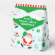Caixa de favoritos de Natal do Pickleball com Papais noeis engraçados tocando picleball cercado por guloseimas de Natal.