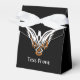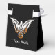 Ícone de pássaro em estilo tribal inspirado em desenhos de nó celta. Cor de fundo personalizada. Texto personalizado em ambos os lados.
