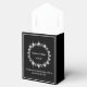 Esta caixa de favor de festa é mostrada em uma cor elegante preto e branco com um acento de brilho de diamante no centro da frente.