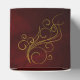 Esta é uma caixa na moda, rica e bonita, com sua mensagem especial e seus primeiros nomes em ouro, em um elegante e profundo gradiente vermelho-burgundy. Uma espiral de ouro bonito acaba no topo da caixa. Esta caixa de favoritos combina com o Elegante Red Dourado Monogramas Convites de Casamento na nossa loja.