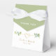 Aprecie seus convidados com estas Caixas de Favor Eucalyptus Wedding, perfeitas para mostrar seu apreço. Apresentando um belo design de coração feito de gêmeo ouro e elegante verde de eucalipto, essas caixas são uma maneira encantadora de apresentar pequenos bronzeados ou presentes. A mensagem personalizada "Obrigado" e seus nomes e data de casamento acrescentam um toque pessoal e atencioso à sua celebração. Um favor doce e memorável para seus hóspedes apreciarem!