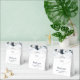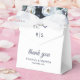Caixas de favorecimento modernas com elegantes flores azuis, suas iniciais, o ditado "obrigado você", seus nomes e a data do casamento.