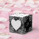 Caixa de favores em forma quadrada fabulosa tem uma janela de recorte em forma de coração. Também tem um bom padrão floral em Preto e Branco e os nomes dos recém-casados no topo. Nas laterais, apresenta o monograma do sobrenome. Mostrado em preto e branco. Personalizar ou comprar conforme projetado. Coordenadas com o "Convite de casamento do templo Floral Negro e Branco" e com o "Convite de Recepção do Templo Floral Negro e Branco" e os "guardanapos de papel Floral Negro e Branco".