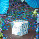 Um design sofisticado com plumas elegantes de ajustado azul de hydrangeas para Bridgerton.