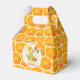 Aprecie seus hóspedes com esta caixa de favor brilhante e alegre, com fatias laranja desenhadas à mão em um design de citros suculento. Perfeito para se encher de doces, doces, ou pequenos guardas, esta caixa adiciona um toque divertido e frutado à sua festa de aniversário. Uma nova maneira de dizer obrigado com estilo!