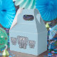 Caixa de favoritos do partido mostrada em azul claro em um estilo elegante com um lindo elefante de desenho animado. Personalize este item e adicione seu próprio texto ou comprar como está e adicione alguma faixa bonito.