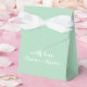 O script de fita de rico acentua esta caixa de favoritos verde da casa da moeda, que é fácil de personalizar para o seu evento.