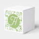 Personalize esta linda caixa de favor inicial com folhas de oliveira.