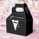 O design da Caixa de Favor Personalizável para Padrinho apresenta o visual de um smoking como design principal. A palavra "Padrinho" pode ser alterada para ler Melhor Homem, Usher ou outro. Encomende junto com o design "Noiva" coordenado, substitua a redação com os nomes do casal e você terá os favores perfeitos para o casamento ou chá de panela.
