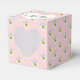 Coração branco com nomes de recém-casados em padrão rosa bege e margarida.