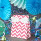 Hip e a moderna Trendy Chevron. Essa caixa de favor legal, disponível em cinco formas, apresenta um padrão de zag zag em pink e branco. Adicione texto a este design para lhe dar um toque pessoal.