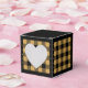 Caixa de favor xadrez de búfalo dourado e preto em forma de coração. O texto no verso da caixa é personalizável. Se você usar o botão/ferramenta 'editar design', também poderá adicionar suas próprias imagens/fotos. Outras opções de cores disponíveis.