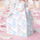 Caixa de favoritos de casamento ideal para mostrar seu apreço pela sua madrinha de casamento, garotas de flores, madrinhas e outros assistentes do seu casamento. Casal de aves bonitas em desenho gráfico de gaiola de aves aberta pendurada numa primavera-árvore florescente com corações. Design de casamento moderno e fascinante da gaiola de pássaros, papel de carta de casamento romântico. Bonito tons pastéis de rosa púrpura, azul, aqua e branco comum. Dê aos seus convidados presentes de festa de casamento e favores nessas lindas caixas de padrões de favoritos de casamento. Arte exclusiva e design por Sarah Trett.