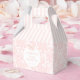 Obrigado de chá de menina adorável e sofisticada - a caixa favorita apresenta uma fita de arco rosa de bebê pastel moderna com padrão de peônias cutâneas no fundo.