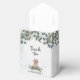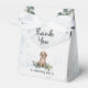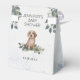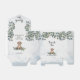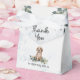 Este design de aquarela bonitinho apresenta um filhote de rebitro Ouro giro sentado numa cama de flores silvestres, verde e folhagem. Personalize com seu nome e data para tornar seu obrigado de Chá de fraldas exclusivo.