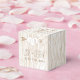 Esta caixa de favorecimento simples e rústica de madeira apresenta um coração e uma flecha bonitinhos com as iniciais do casal e uma textura de madeira esmaecida no fundo.