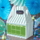 Criativo tênis temia presentes de festa da caixa com tênis e listras azuis. Edite texto para personalizar facilmente o tênis e outros eventos desportivos de tênis.