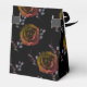 Assumir a elegância das rosas de outono preto, Crimson e roxo, pois apreciamos a beleza do macabro e o fascínio do desconhecido. Esta encantadora caixa de favoritos de casamento é um padrão floral escuro de rosas antigos, roxas e laranjas queimadas em preto. A frente tem os nomes dos casais e a data do casamento embelezados com florescimento gótico ornamentado preto. Esta caixa de favor é muito adorável e um favor encantador do seu casamento único.
