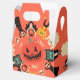 É design de festas de halloween celebrando o próximo Halloween. Este kawaii desenhado à mão e ilustração divertida tem personagens de halloween, vampiro, abóbora, Frankenstein, chefia, lobisomem, esqueleto, fantasma e abóbora.