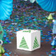 Árvores dispostas em quatro lados e no topo da caixa. A imagem é criada usando várias linhas em verde, de comprimento decrescente. Por cima, o texto vermelho que se curva sobre as árvores diz "Feliz Natal!" ***Parte de um conjunto coordenado - BKM2k.