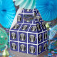 Caixa de favorecimento de festa exclusiva de lacrosse, noite de mais velho ou evento esportivo com paus de lax ilustrando o padrão de design em fundo azul.