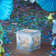 Belo Bordado Floral de Pássaro Azul Caixa de Favor
